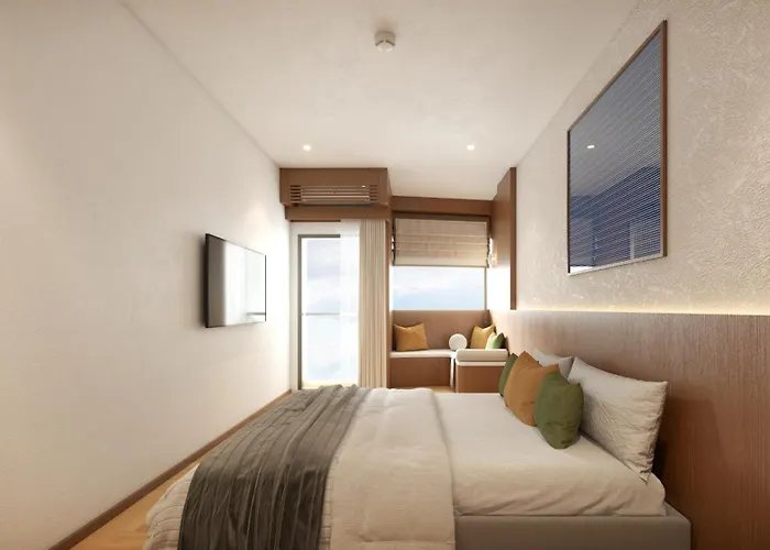 Os quartos incluem varanda completa com controle de temperatura, bem como TV de tela plana com canais via satélite. O quarto tem chaleira elétrica e máquina de café/chá também. As casas de banho são equipadas com casa de banho separada e chuveiro, bem como confortos como secador de cabelo e roupões.